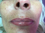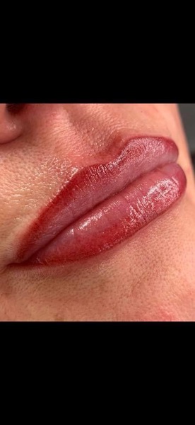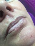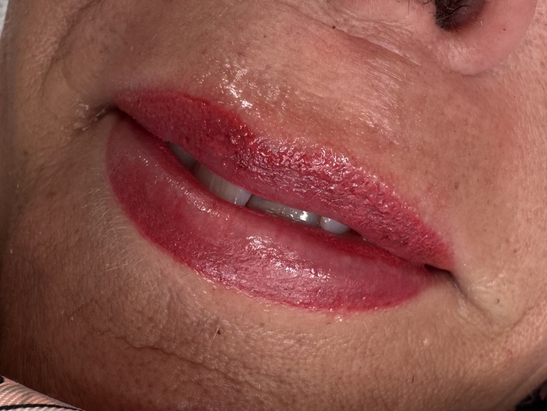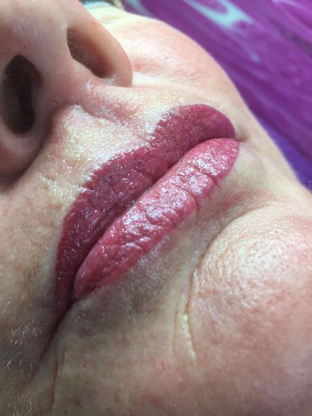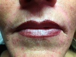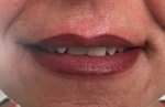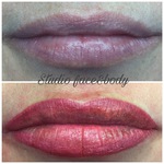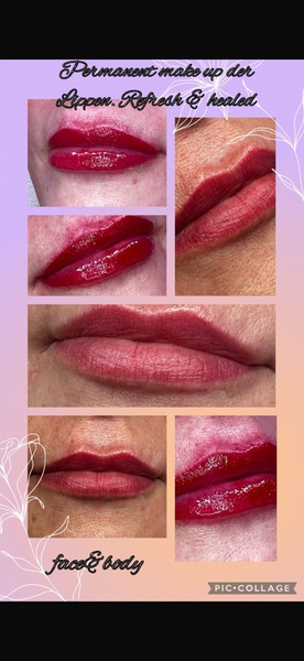 ...Lippenkonturen und -korrekturen werden mit natürlichen Farbtönen dem Wunsch der Kundin entsprechend nachgezeichnet. Schmale und ungleichmäßige Lippen werden durch verschiedene Arbeitstechniken